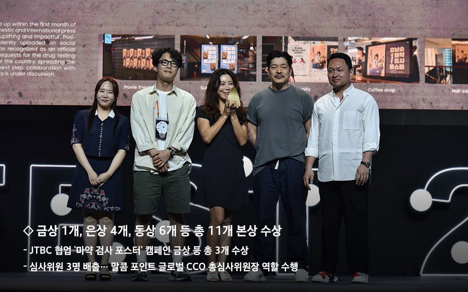 삼이 중 JTBC와 진행한 ‘마약 검사 포스터(Drug Test Poster)’ 캠페인이 다이렉트 부문 금상 등 3개의 상을 수상하며 가장 큰 주목을 받았다. 캠페인은 마약 간이 검사 스티커가 삽입된 드라마(JTBC ‘힘쎈여자 강남순) 홍보 포스터를 특수 제작해 영화관, 병원 등에 배포한 이색적인 공익 프로젝트다. 포스터의 일부처럼 보이는 검사 스티커를 떼어내 마약으로 의심되는 술이나 음료를 한 방울 떨어뜨리면 마약 양성 여부를 확인할 수 있는 점이 특징이다.
